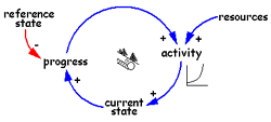 What the graphs indicate is that as activity increases the current state increases. And as the current state increases progress increases. And finally as progress increases activity increases. We gone full circle and have produced a reinforcing loop rather than a structure which is self-limiting and balances as in the initial goals structure.